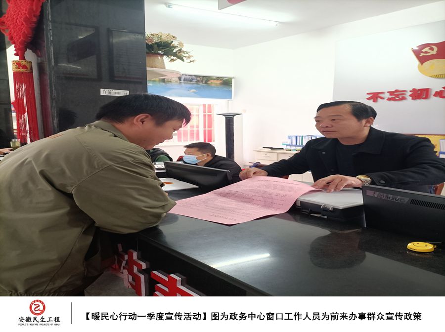 18【暖民心行动一季度宣传活动】图为各地政务中心窗口工作人员为办事群众宣传政策.jpg【103.61 KB】