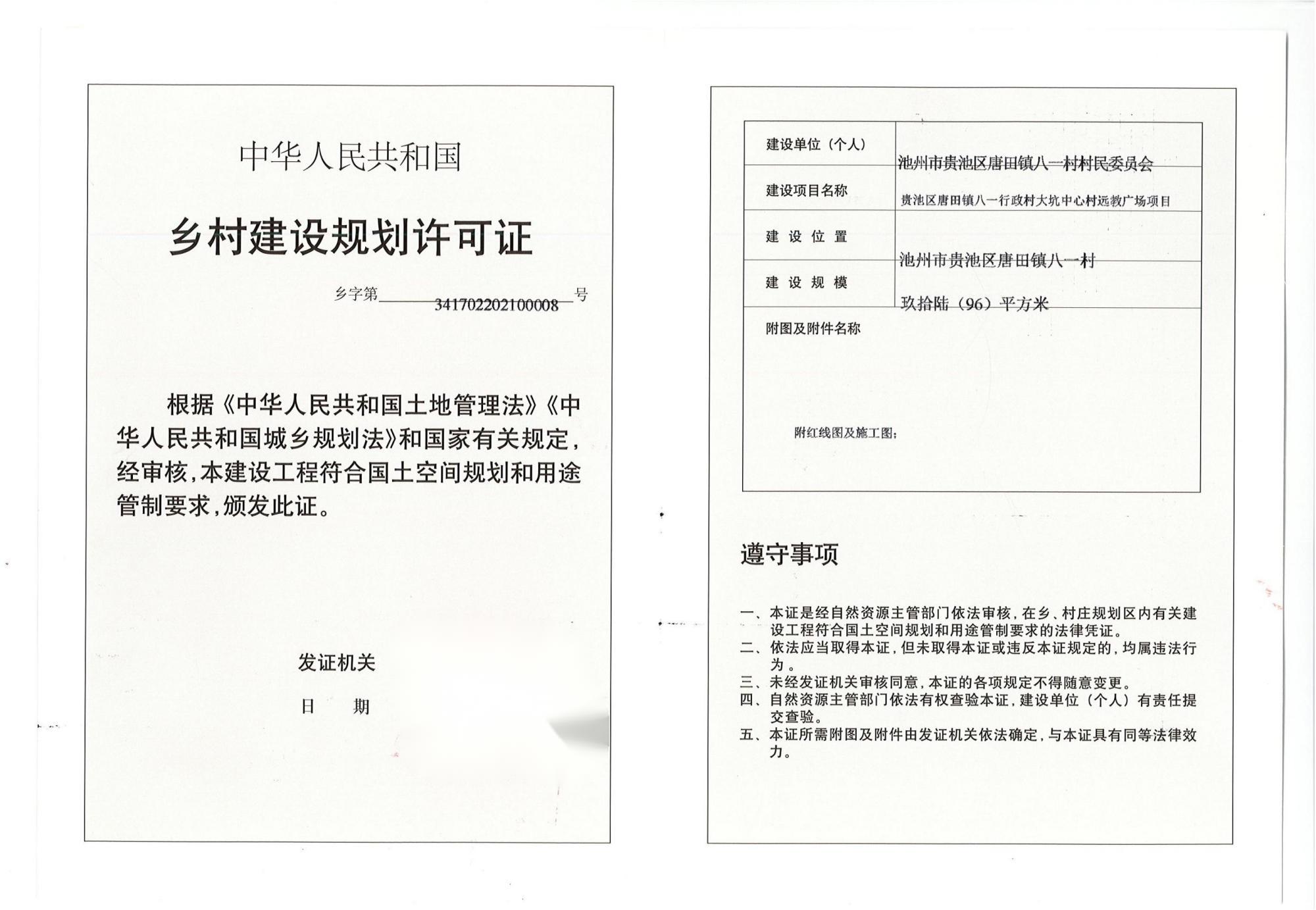 乡村建设规划许可证(澳门皇冠体育_中国竞彩网$【官网娱乐平台】:唐田镇八一行政村大坑中心村远教广场项目)