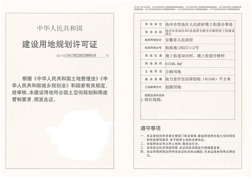 建设用地规划许可证(池州市澳门皇冠体育_中国竞彩网$【官网娱乐平台】:507县道黄屯桥至许桥村段工程建设项目)