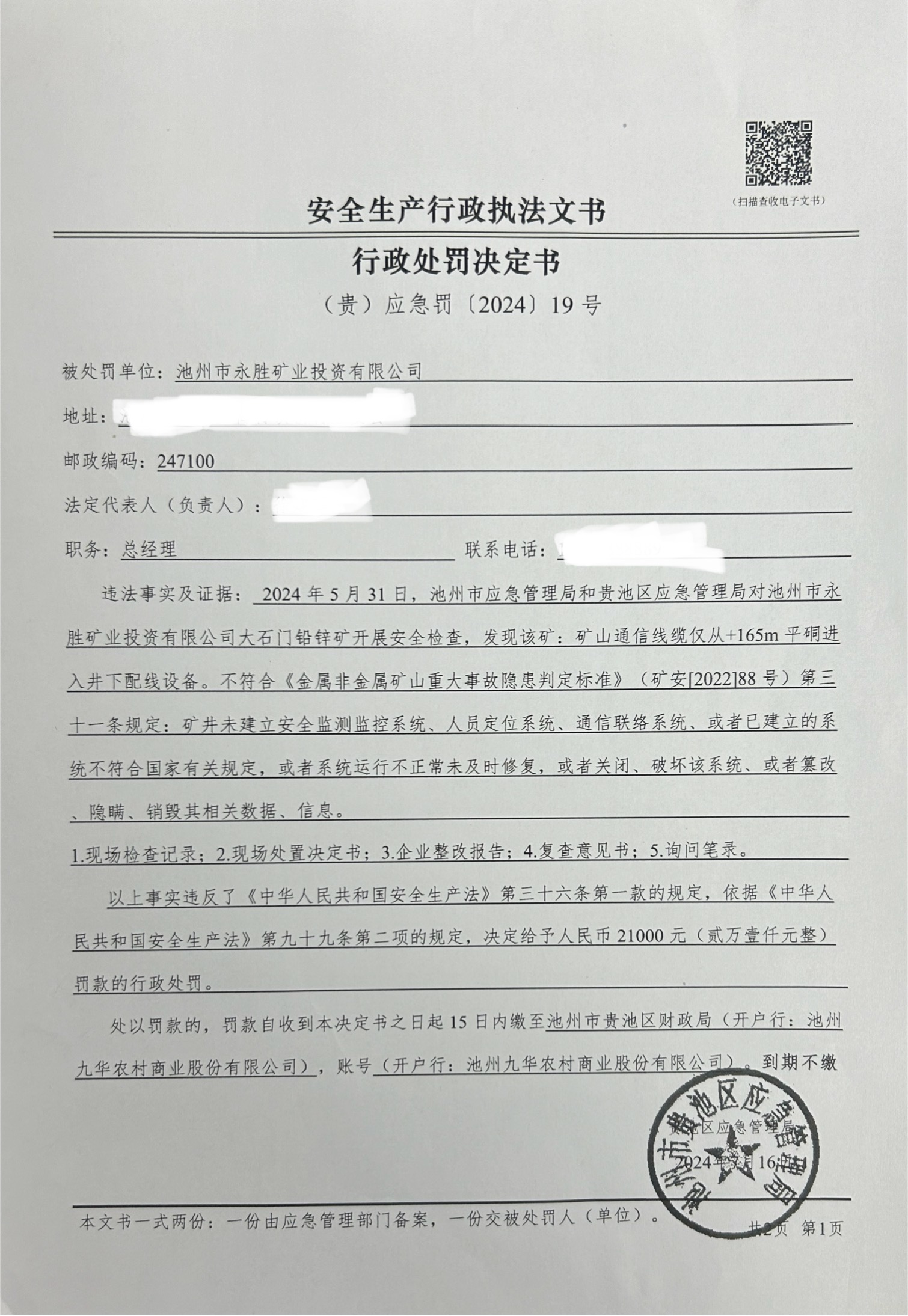 (贵)应急罚〔2024〕19号